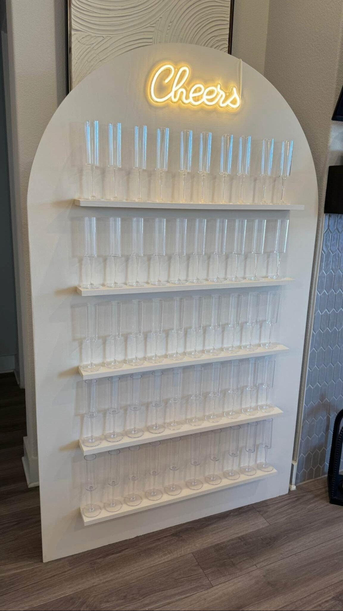 Add a touch of elegance and fun to your event with our Champagne Wall. Perfect for weddings, corporate events, birthdays, and holiday parties, this feature instantly elevates the vibe while giving your guests the ultimate photo-worthy moment. Includes setup, breakdown, and cleaning.*Holds up to 50 glasses (flutes included or BYO).